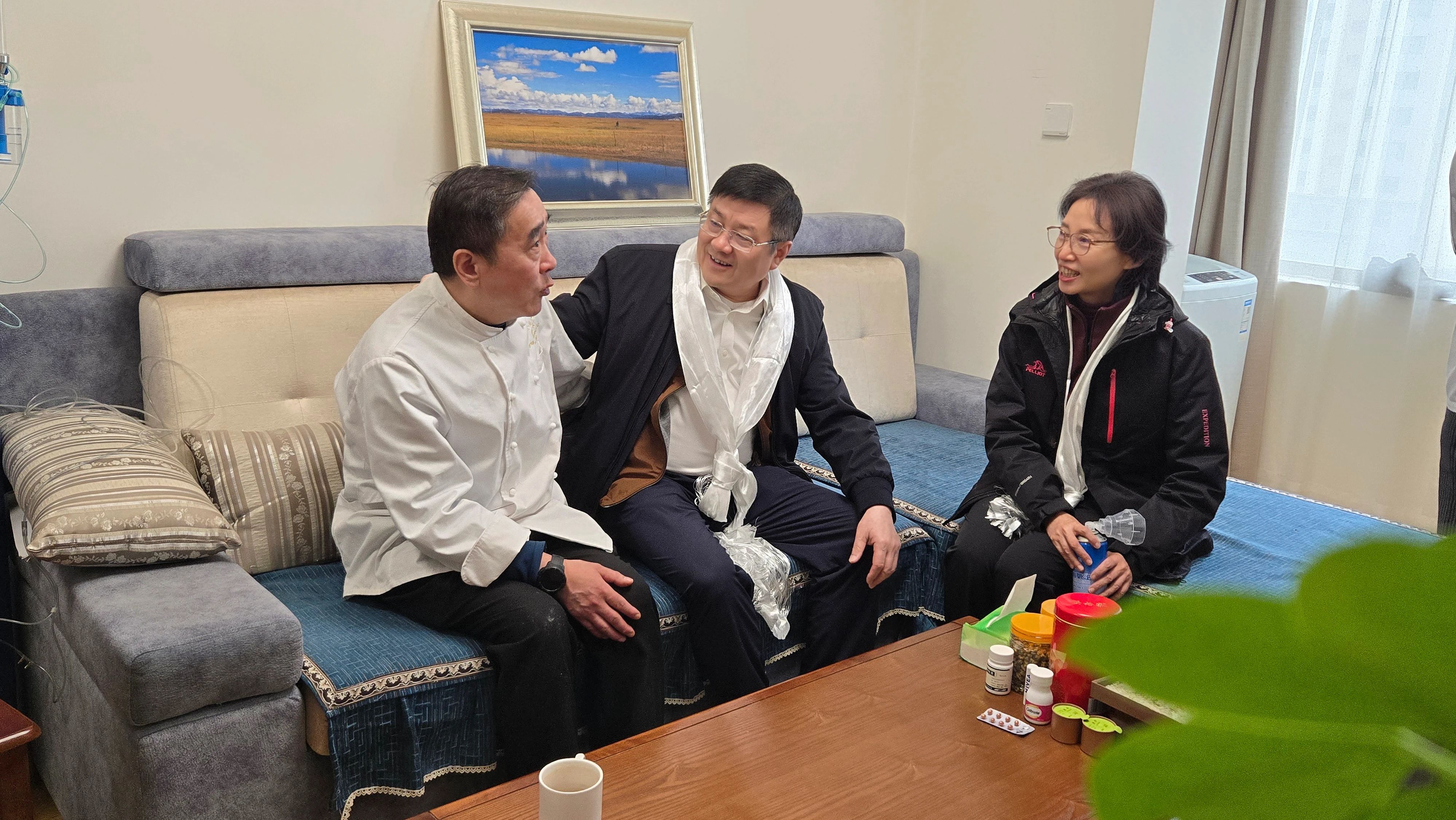 抵达拉萨后,,,,,,白凡第一时间来到北京援藏干部公寓,,,,,,与援藏干部们亲热碰面,,,,,,向每一位援藏干部表达了最真挚的问候和高尚的敬意。。。。。他体现,,,,,,7790必发集团官网始终将援藏事情视为主要政治使命,,,,,,高度关注援藏干部的事情与生涯。。。。。援藏干部们远离家乡和亲人,,,,,,在艰辛的高原情形中无私贡献,,,,,,为增进民族团结、推动拉萨生长孝顺实力,,,,,,这种精神令人钦佩,,,,,,是集团全体员工学习的模范。。。。。